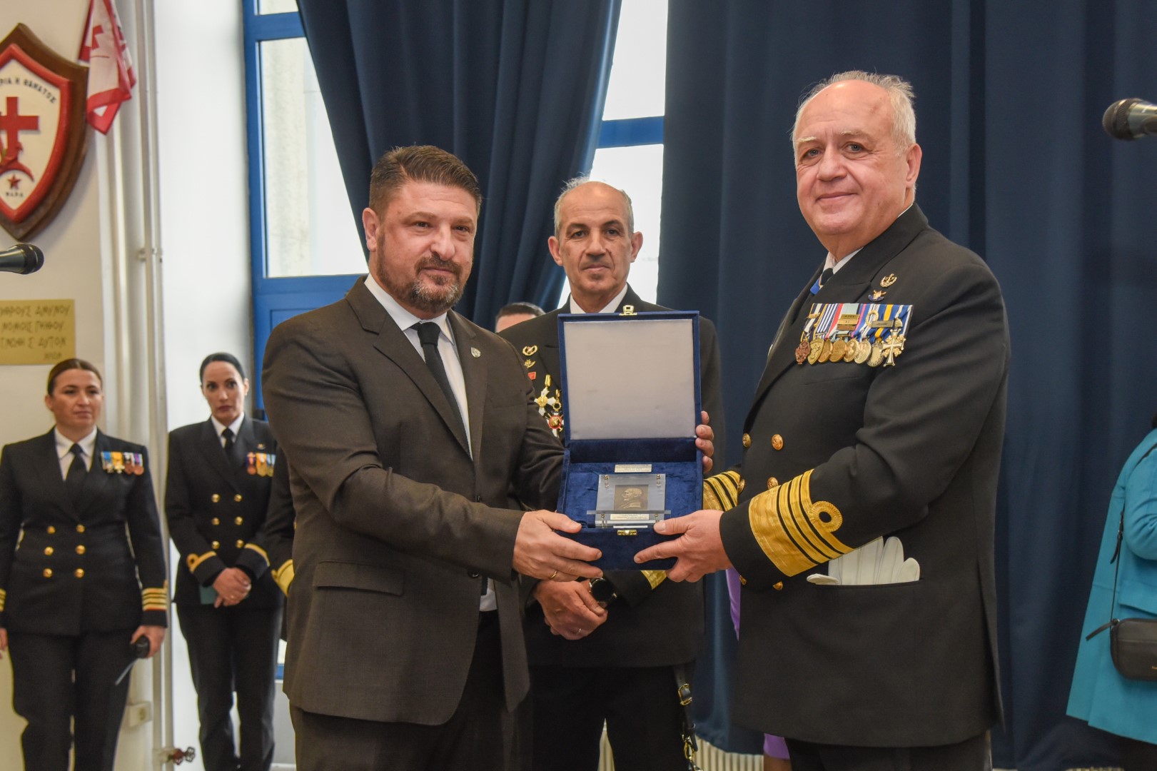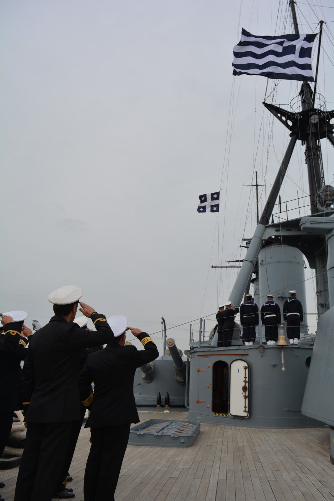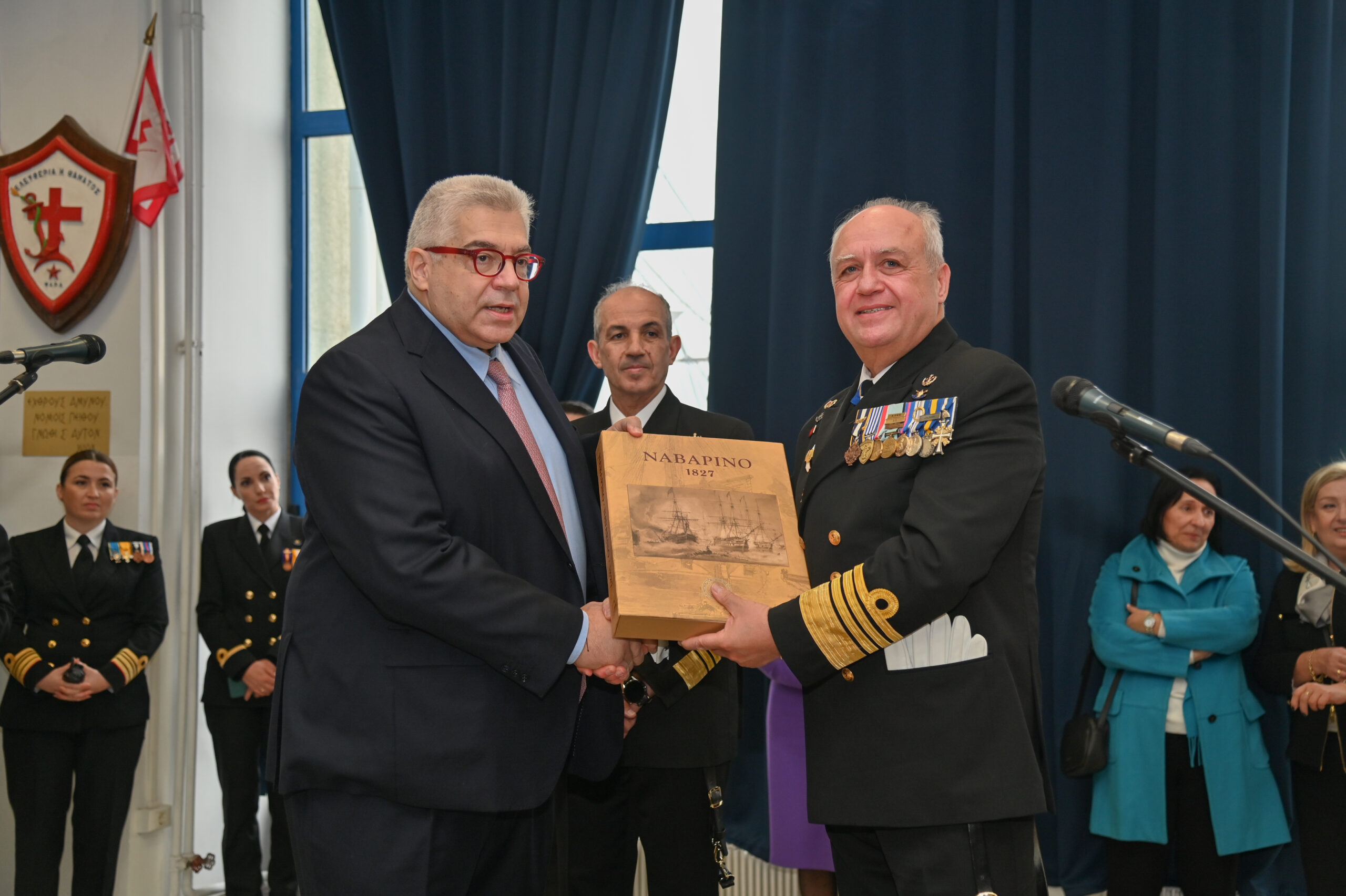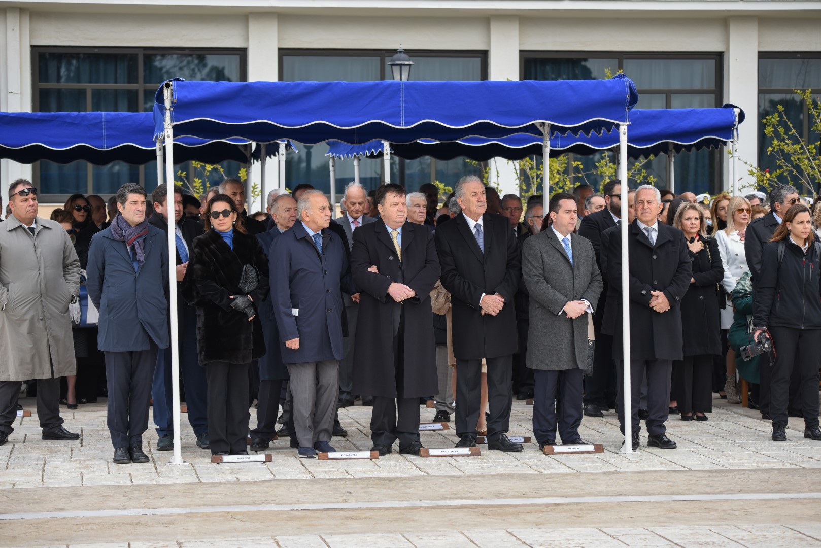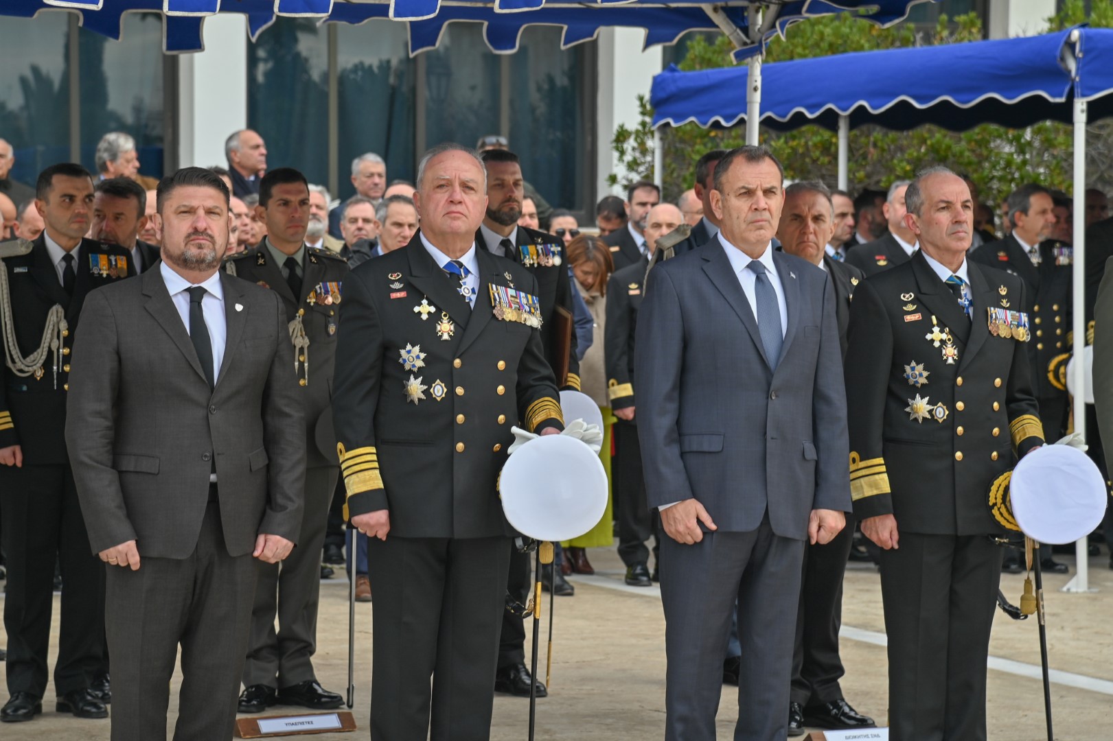 Στην τελετή παρέστησαν ο Υπουργός Εθνικής Άμυνας κ. Νικόλαος Παναγιωτόπουλος, ο Υπουργός Μετανάστευσης και Ασύλου κ. Παναγιώτης (Νότης) Μηταράκης, ο Υφυπουργός Εθνικής Άμυνας κ. Νικόλαος Χαρδαλιάς, βουλευτές του Ελληνικού Κοινοβουλίου, η Πρόεδρος του Αρείου Πάγου κ. Μαρία Γεωργίου, ο Αρχηγός του Γενικού Επιτελείου Εθνικής Άμυνας Στρατηγός Κωνσταντίνος Φλώρος, ο Γενικός Γραμματέας του Υπουργείου Εθνικής Άμυνας κ. Αντώνιος Οικονόμου, ο Δήμαρχος Πειραιά κ. Ιωάννης Μώραλης, ο Σεβασμιότατος Μητροπολίτης Πειραιώς κ. κ. Σεραφείμ, o Πρέσβης της Γαλλίας κ. Patrick Maisonnave, Επίτιμοι Αρχηγοί ΓΕΕΘΑ και ΓΕΝ, ο Αρχηγός ΓΕΑ Αντιπτέραρχος (Ι) Θεμιστοκλής Μπουρολιάς, ο Αρχηγός ΓΕΣ Αντιστράτηγος Άγγελος Χουδελούδης, ο Αρχηγός Λ.Σ.-ΕΛ.ΑΚΤ. Αντιναύαρχος Λ.Σ. Γεώργιος Αλεξανδράκης, εκπρόσωποι των Αρχηγών της Ελληνικής Αστυνομίας και του Πυροσβεστικού Σώματος, τα μέλη του Ανωτάτου Ναυτικού Συμβουλίου και λοιποί Ανώτατοι Αξιωματικοί, ο Δήμαρχος Σαλαμίνας Γεώργιος Παναγόπουλος, πρώην Υπουργοί, αντιπροσωπείες Αξιωματικών και Υπαξιωματικών των Ενόπλων Δυνάμεων, ο Διοικητής Ναυτικού Κύπρου Πλοίαρχος Κωνσταντίνος Γενναδίου ΠΝ, Ακόλουθοι Άμυνας και αντιπροσωπείες ξένων κρατών, μέλη της ευρύτερης Ναυτικής και Ναυτιλιακής κοινότητας, εν αποστρατεία στελέχη του Πολεμικού Ναυτικού, καθώς και λοιποί προσκεκλημένοι.