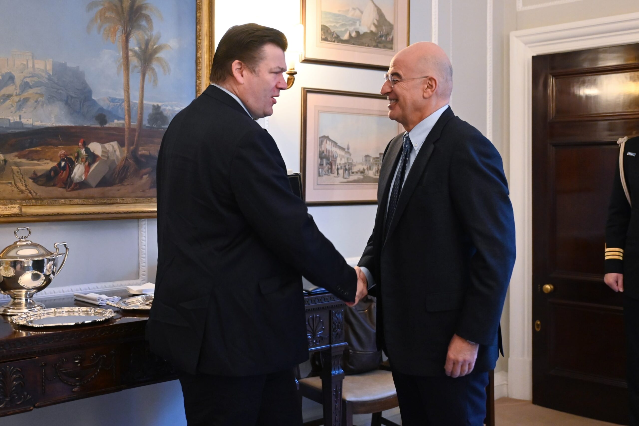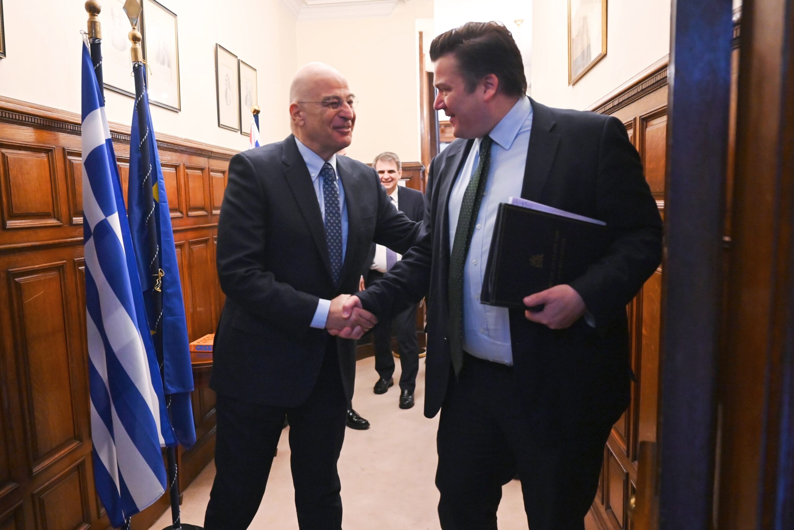 Ο Υπουργός Εθνικής Άμυνας Νίκος Δένδιας, ολοκληρώνοντας την επίσκεψή του στο Λονδίνο, συναντήθηκε σήμερα, Δευτέρα 12 Φεβρουαρίου 2024, στην πρεσβευτική κατοικία της Πρεσβείας της Ελλάδος, με τον Υφυπουργό Άμυνας του Ηνωμένου Βασιλείου, James Heappey, αρμόδιο, μεταξύ άλλων, για την Επιχειρησιακή Πολιτική των Ενόπλων Δυνάμεων της χώρας,
