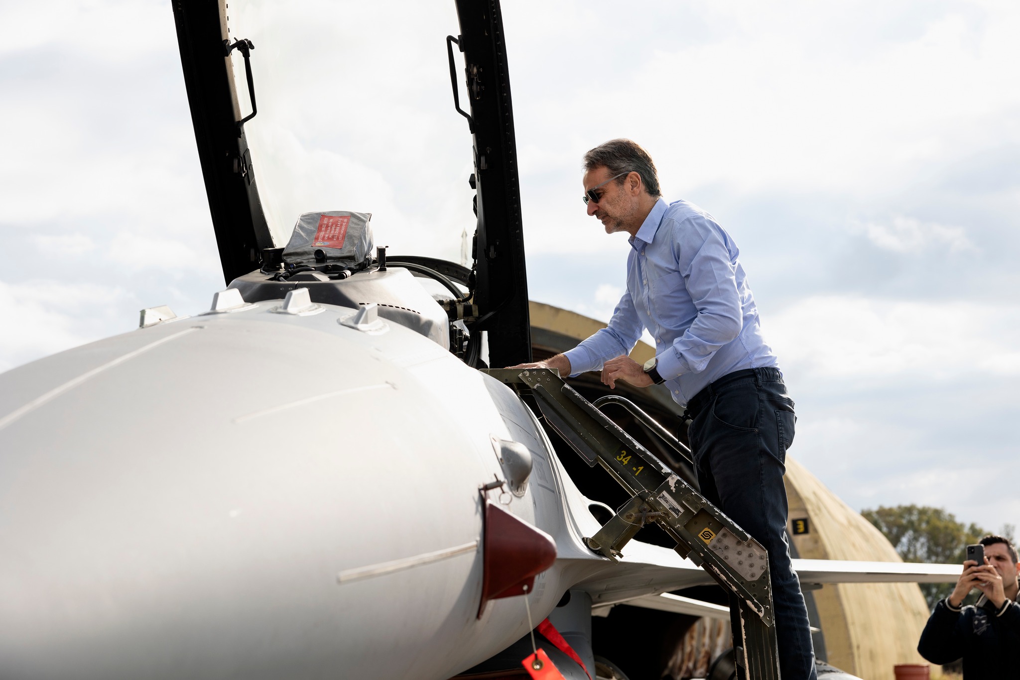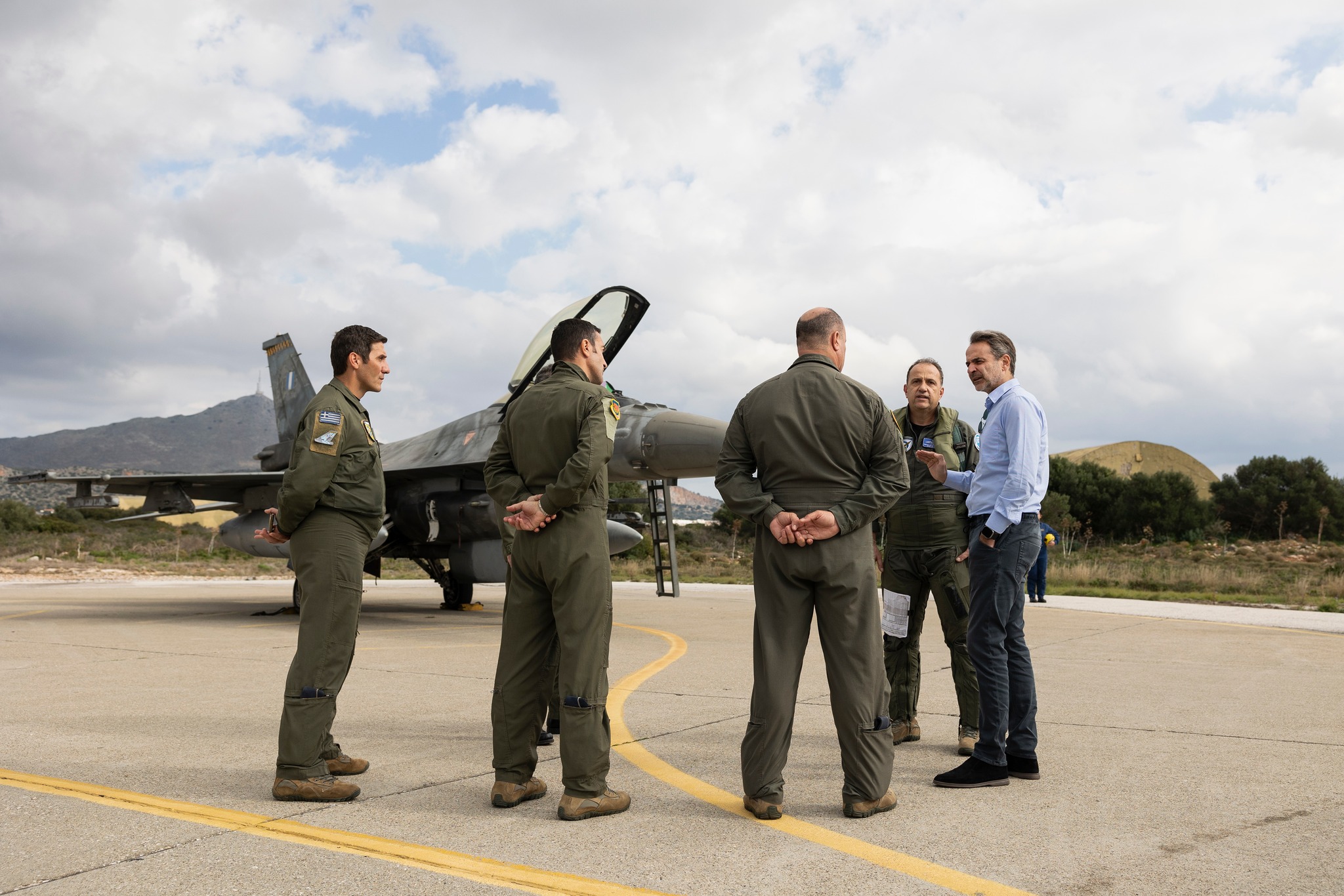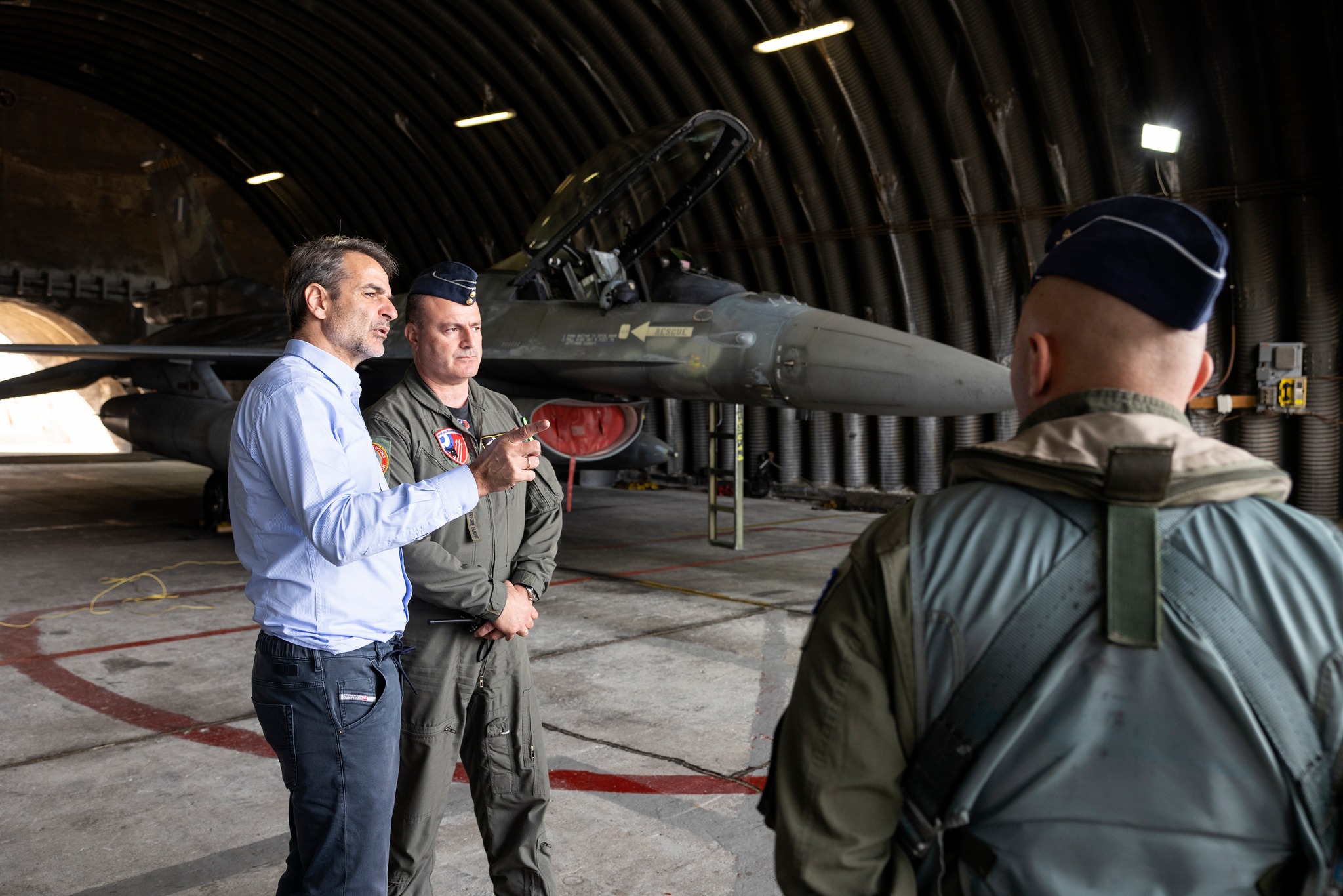 Ο πρωθυπουργός επιθεώρησε αεροσκάφη τύπου F-16 και αναβαθμισμένα F-16 VIPER και ενημερώθηκε για την αποστολή, την οργάνωση και ετοιμότητα της Πτέρυγας Μάχης, την αναβάθμιση των αεροσκαφών και τη συνολικότερη ενίσχυση των Ενόπλων Δυνάμεων.
