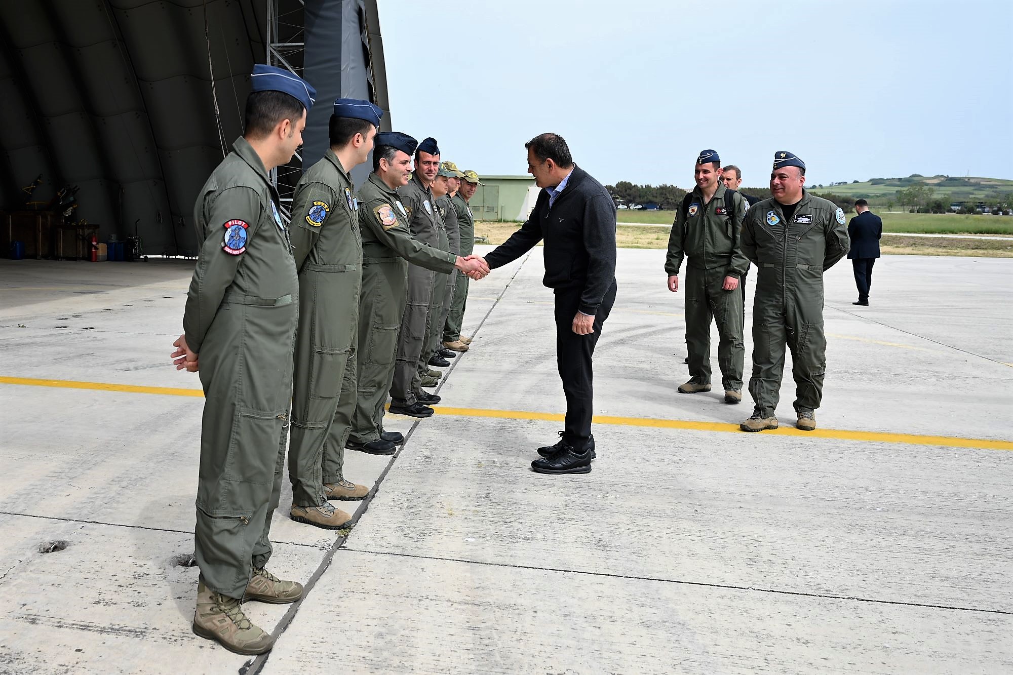 Ο Υπουργός μετέβη στην 130 Σμηναρχία Μάχης (130 ΣΜ) όπου συναντήθηκε με τα στελέχη που υπηρετούν στις εγκαταστάσεις των Κλιμακίων Επιφυλακής (Readiness) μαχητικών αεροσκαφών και ελικοπτέρων της Πολεμικής Αεροπορίας, και ενημερώθηκε για επιχειρησιακά θέματα.
