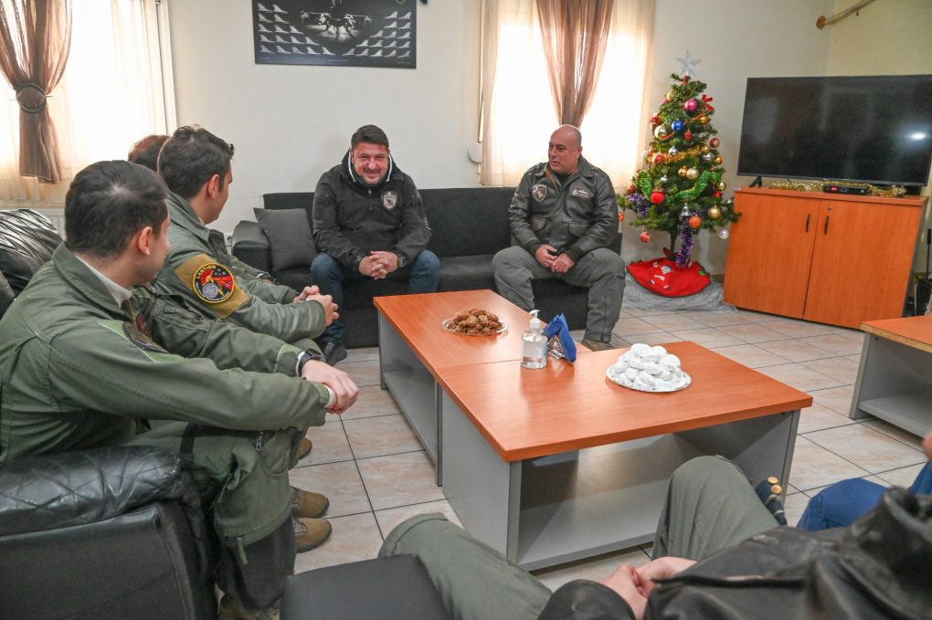 Επίσης, επισκέφθηκε το ΤΠΚ ΜΥΚΟΝΙΟΣ, που βρίσκεται σε αποστολή στην ευρύτερη θαλάσσια περιοχή του Βόρειου Αιγαίου, ενώ συναντήθηκε και αντάλλαξε ευχές με τους ιπτάμενους και τους τεχνικούς των κλιμακίων επιφυλακής (Readiness) μαχητικών αεροσκαφών F-16 της 347 Μοίρας και ελικοπτέρων Super Puma, στην έδρα της 130 Σμηναρχίας Μάχης (130 ΣΜ), στη Λήμνο.