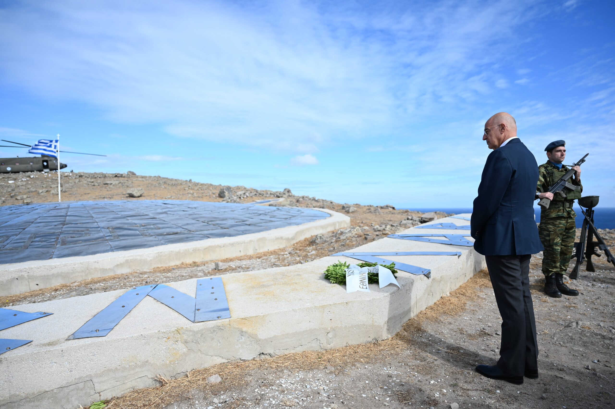 Τέλος, ο κ. Δένδιας μετέβη στο Μνημείο του Υποσμηναγού (Ι) Νικόλαου Σιαλμά όπου κατέθεσε στέφανο.