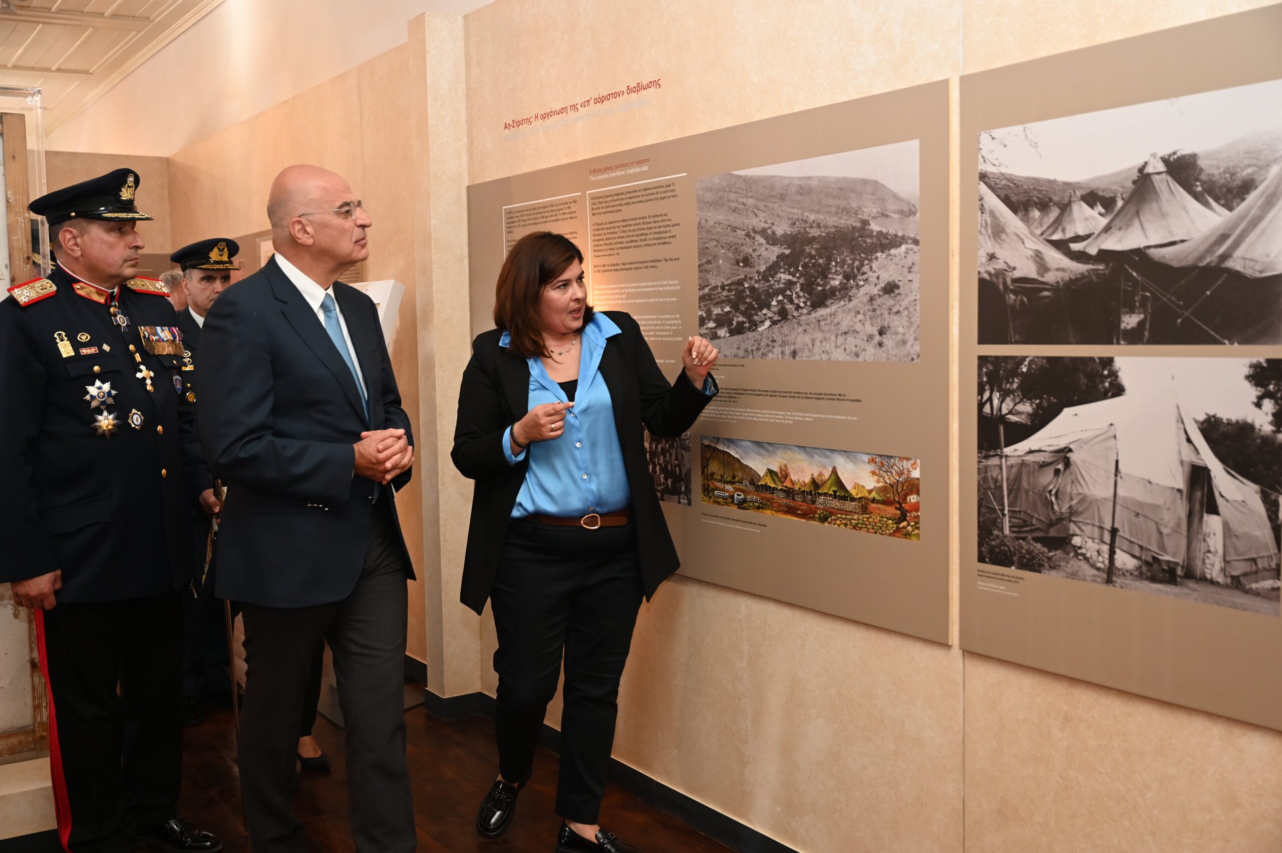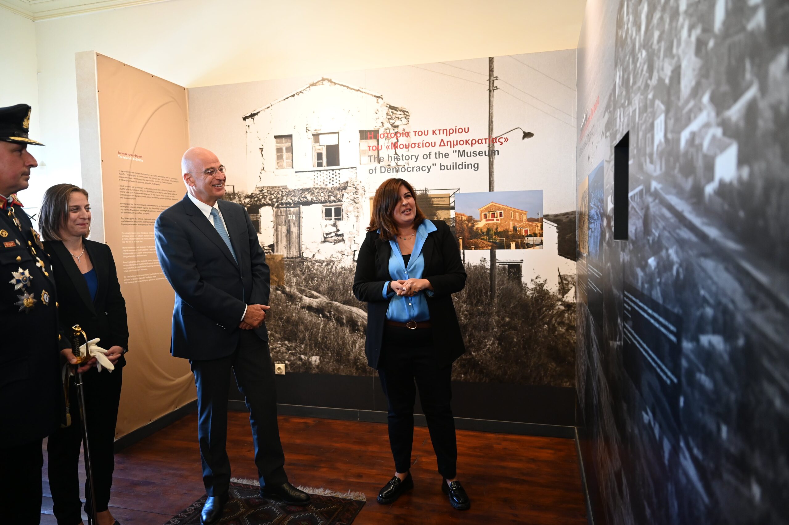 Ακολούθως, ο Υπουργός Εθνικής Άμυνας ξεναγήθηκε στο Μουσείο Δημοκρατίας του Αγίου Ευστρατίου, όπου ενημερώθηκε για την ιστορία του χώρου, την ίδρυση του Μουσείου και τη λειτουργία του.