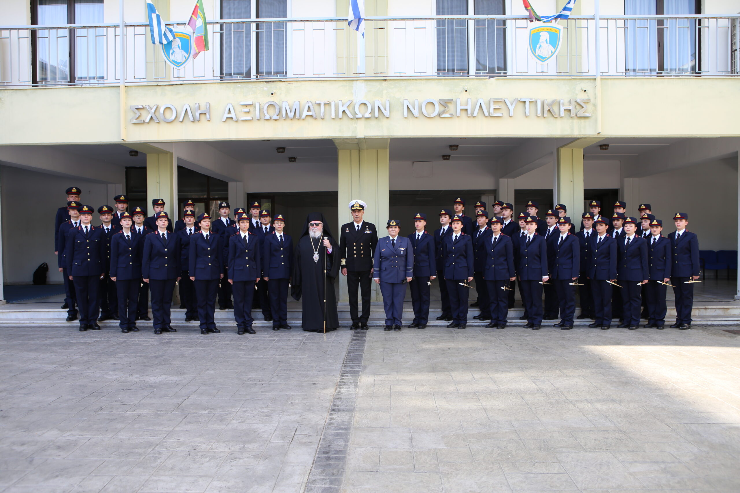 Η τελετή πραγματοποιήθηκε στις εγκαταστάσεις της Σχολής στον Βύρωνα Αττικής, χοροστατούντος του Σεβασμιώτατου Μητροπολίτη Καισαριανής, Βύρωνος και Υμηττού κ.κ. Δανιήλ, και παραβρέθηκαν σε αυτήν: