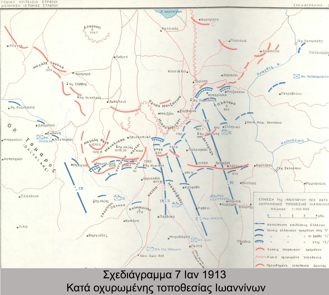 Κατά τη διάρκεια του Α΄ Βαλκανικού Πολέμου, το τμήμα Στρατιάς της Ηπείρου, υπό τον Υποστράτηγο Κωνσταντίνο Σαπουντζάκη, είχε ως στόχο την απελευθέρωση των Ιωαννίνων. Μετά τις μάχες στην πεδιάδα της Άρτας (αρχές Οκτωβρίου 1912), την κατάληψη της Πρέβεζας (21 Οκτωβρίου) και τις σκληρές μάχες των Πέντε Πηγαδιών (24 Οκτωβρίου) και των Πεστών (29 Νοεμβρίου), ο Ελληνικός Στρατός έφθασε στην οχυρωμένη περίμετρο των Ιωαννίνων, στο Μπιζάνι. Ωστόσο, οι ανεπιτυχείς προσπάθειες για την κατάληψη του οχυρού (αρχές Δεκεμβρίου 1912 – αρχές Ιανουαρίου 1913) οδήγησαν στην αντικατάσταση του Σαπουντζάκη από τον Αρχιστράτηγο, Διάδοχο Κωνσταντίνο. Η επίθεση στις 20 Φεβρουαρίου του 1913 αποτέλεσε την τελευταία καθοριστική μάχη για την κατάληψη της πόλης των Ιωαννίνων. Η καταστροφή των τηλεφωνικών γραμμών από το 1ο Σύνταγμα Ευζώνων συνέβαλε στην παραπλάνηση και τον αιφνιδιασμό της τουρκικής Διοίκησης και στην τολμηρή διείσδυση του Συντάγματος, καθορίζοντας το αποτέλεσμα της τελευταίας μάχης, που ήταν η κατάληψη της πόλης των Ιωαννίνων. Ο Τούρκος διοικητής της, Εσσάτ Πασάς, την παρέδωσε «άνευ όρων», στις 21 Φεβρουαρίου 1913.