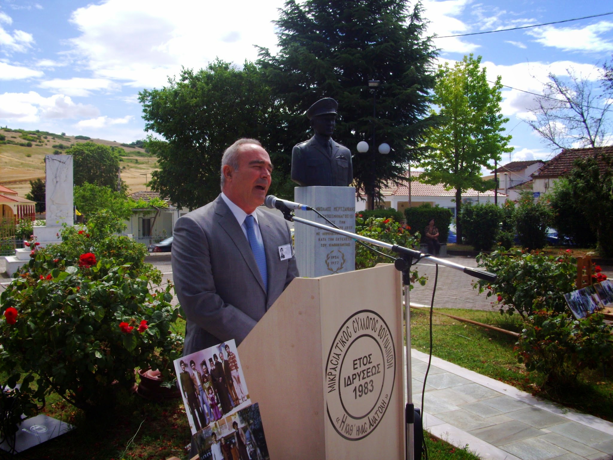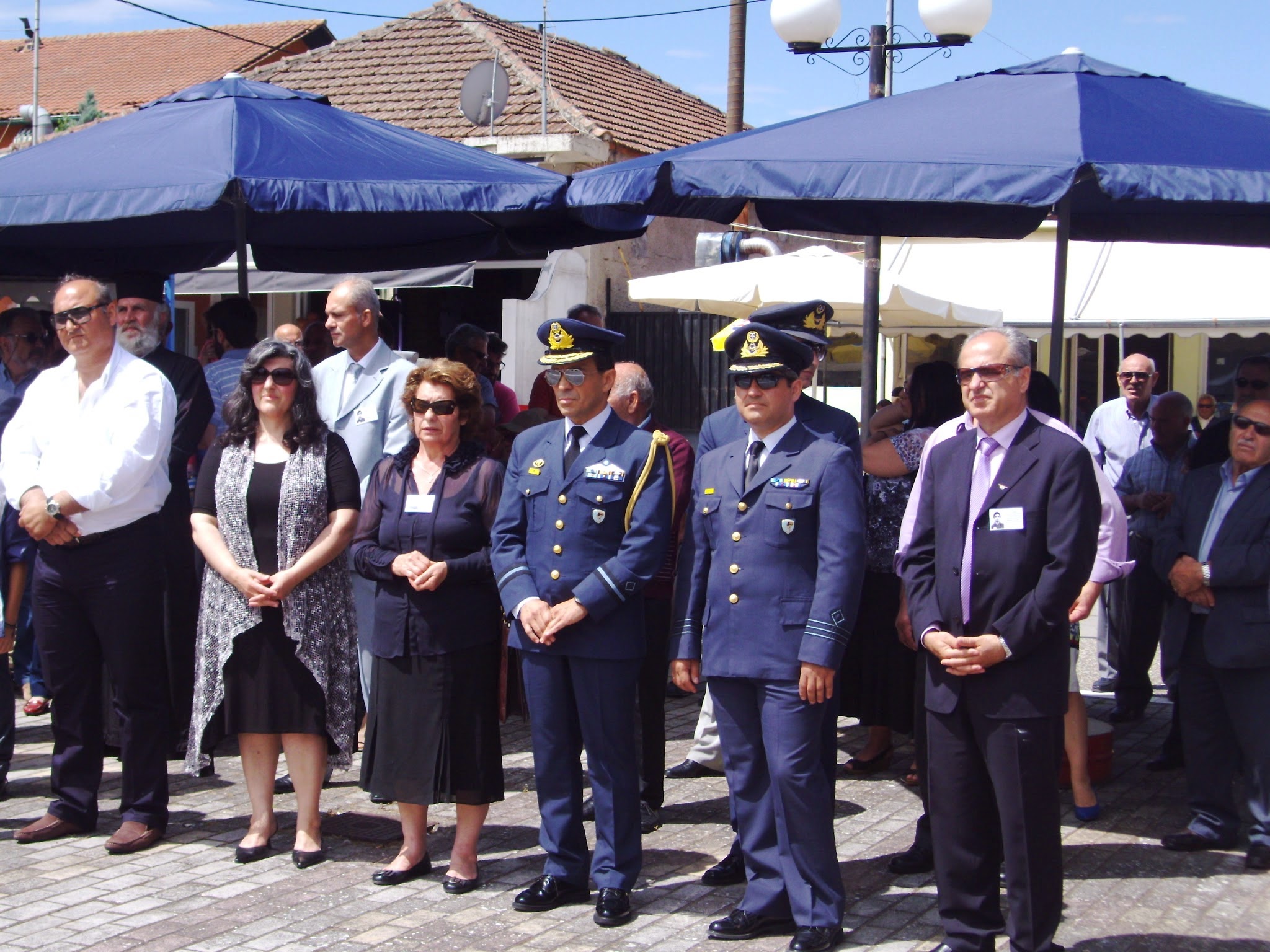 Στην τελετή παρευρέθησαν ο επίτιμος αρχηγός ΓΕΕΘΑ Πτέραρχος κου Ιωάννης Γιάγκος , ο βουλευτή της ΝΔ κου Μάξιμος Χαρακόπουλος , ο εκπρόσωπος του Αρχηγείου .Τακτικής . Αεροπορίας Ταξίαρχος (Ι) κου Παναγιώτης Σκαρπέτας , ο εκπρόσωπος της περιφέρειας κου Σιδηρόπουλος Χρήστος, ο πρόεδρος της κοινότητας Μερτζανίδης Ιωακείμ. Επίσης παρευρέθησαν και κατέθεσαν στεφάνι στην προτομή του ήρωα ,ο πρόεδρος των αποστράτων αξιωματικών πολεμικής αεροπορίας κος Κωνσταντίνος Λιούτας, ο πρόεδρος των Κύπριων Λάρισας κος Αυγουστίνος Αυγουστής ,και ο εκπρόσωπος του Μικρασιάτικου Συλλόγου Λάρισας κος Χρηστός Λαγός